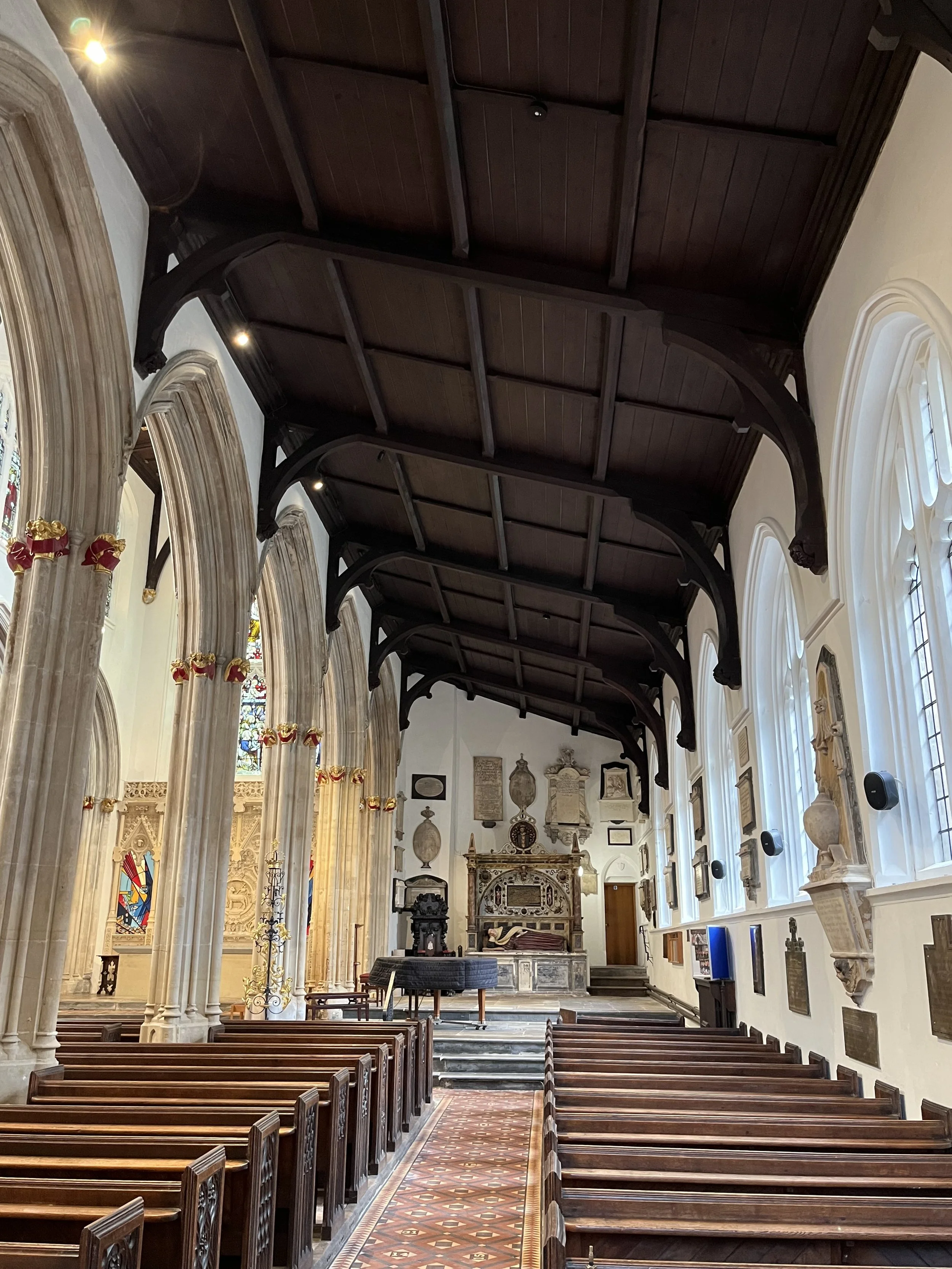 Saint Stephen’s was closed for six months while the refurbishment took place to restore the interior to its former glory and making the space more suitable for purpose. This included the repairs and restoration of clerestory windows, new improved lighting, repairs and repainting of the baptistry dome (including gold leaf repainting of the dove), replacement of the north wall plaster, repairs to pillars and plaster carvings, renovation of the sanctuary tiled floor, cleaning and repairs to significant monuments and a complete redecoration. In addition, the Ecclesiastical Charity joined forces with the Ringers and financed the repair and cleaning of the Victorian tiled floor in the church aisles and the replacement of the old carpeting on the chancel floor and adjoining areas.